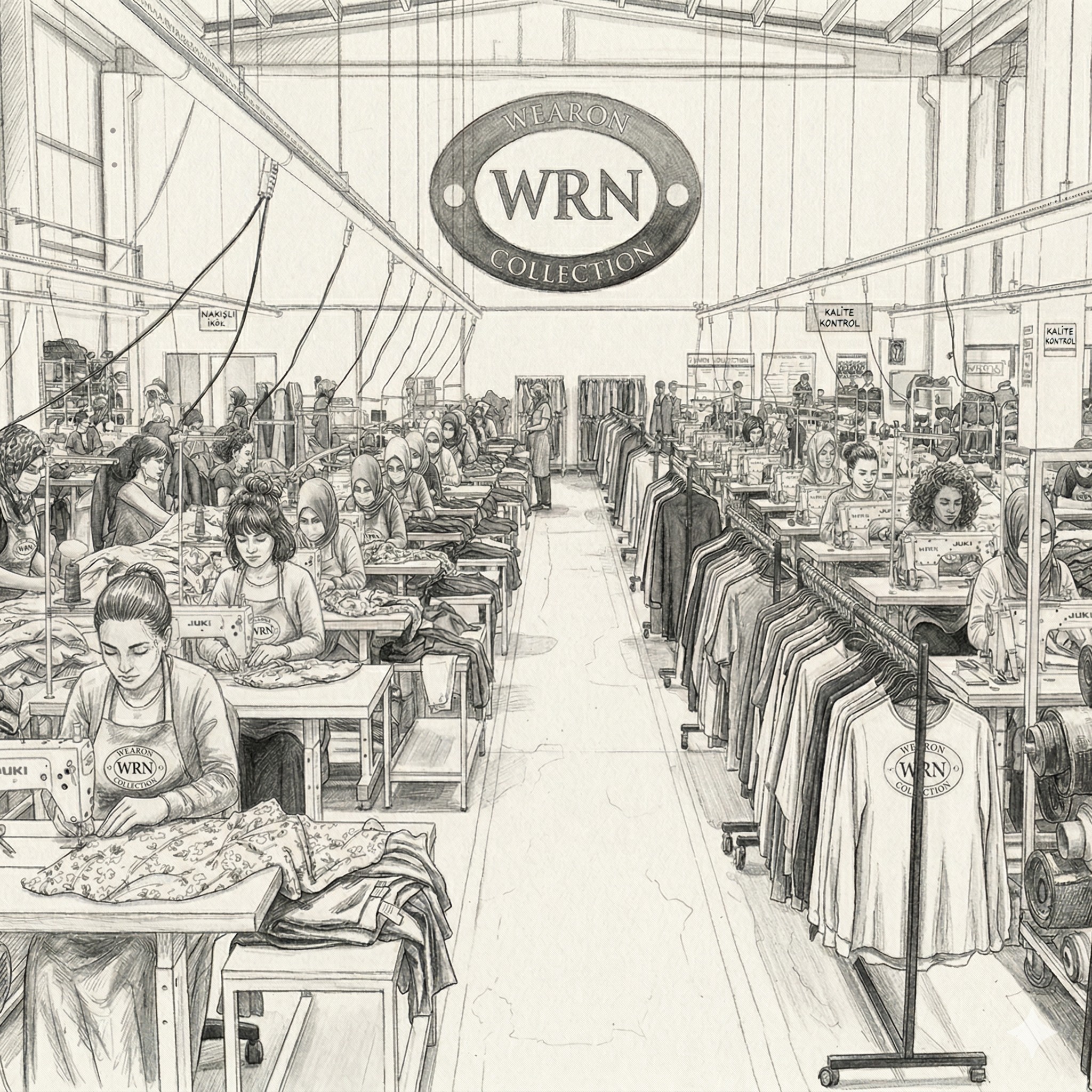 WRN Wearon başarısının arkasında, işine tutkuyla bağlı 100 lerce profesyonel çalışma arkadaşımız yer alıyor. Her bir dikişte, her bir detayda emeği olan bu büyük ekip sayesinde, dünya standartlarında üretim yaparak sektördeki yerimizi her geçen gün sağlamlaştırıyoruz.